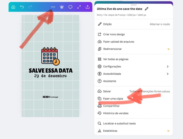 No celular: clique em 3 pontinhos > compartilhar e exportar e depois em fazer uma cópia.